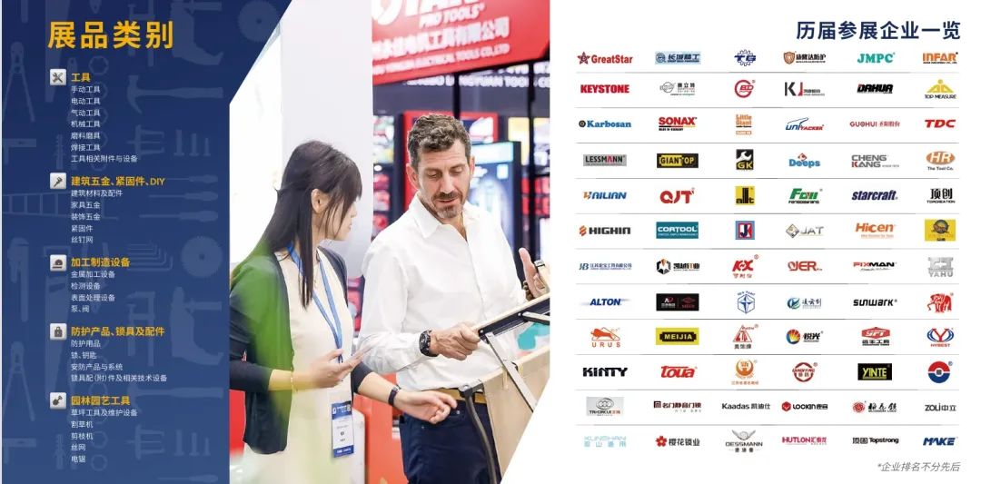 中國五金之都(永康)、中國工具五金(旋具)產業基地(建德)、中國工具產業基地(金華)、中國工具五金生產基地(臨安)、中國五金制品產業基地(小欖)、中國絲網之都(安平)、中國掛鎖產業基地(浦江)、中國五金制釘產業基地(隆堯)以及山東五金衡器、丹陽超硬材料、丹北五金工具等多地的五金行業產業集群及地方行業協會也紛紛組團報名參展。