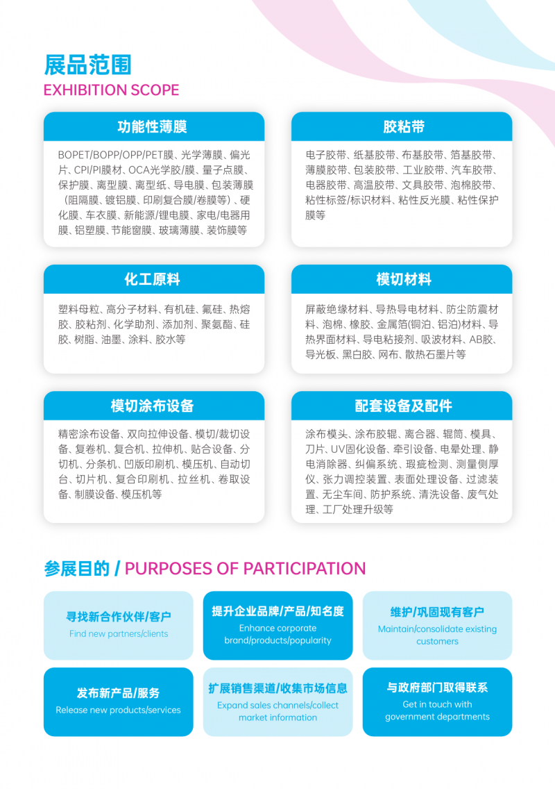 4.新品發布會:為企業提供新品發布的專屬舞臺,在這里,最新研發的膠帶、薄膜產品及相關技術將驚艷亮相,吸引行業目光,助力企業搶占市場先機,提升品牌影響力。王昌萍 13023285272